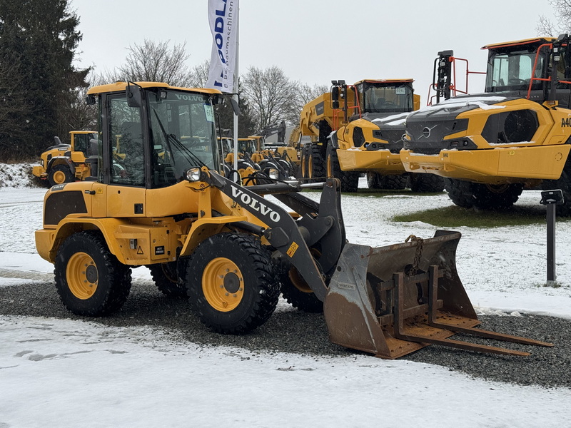 30 km/h, Schnellwechslung, 3. Kreis, BSS, Zentralschmierung, Zusatzkontergewicht, Rundumleuchte, Radio, Dieselpartikelfilter, LED, Reifen 360/80R20 80%, 7,2 t, Schaufel mit Schneide, Gabel