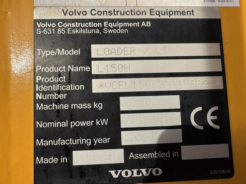 Cuchara, 3er circuito hidráulico, aire acondicionado, BSS, engrase centralizado, CDC, LoadAssist, ventilador reversible, contrapeso adicional, OptiShift, CoPilot, asiento neumático calefactado, cámara de marcha atrás, cámara frontal, radio, DPF, AdBlue, LED, neumáticos 26.5R25 Bridgestone 85%, 26,1 t